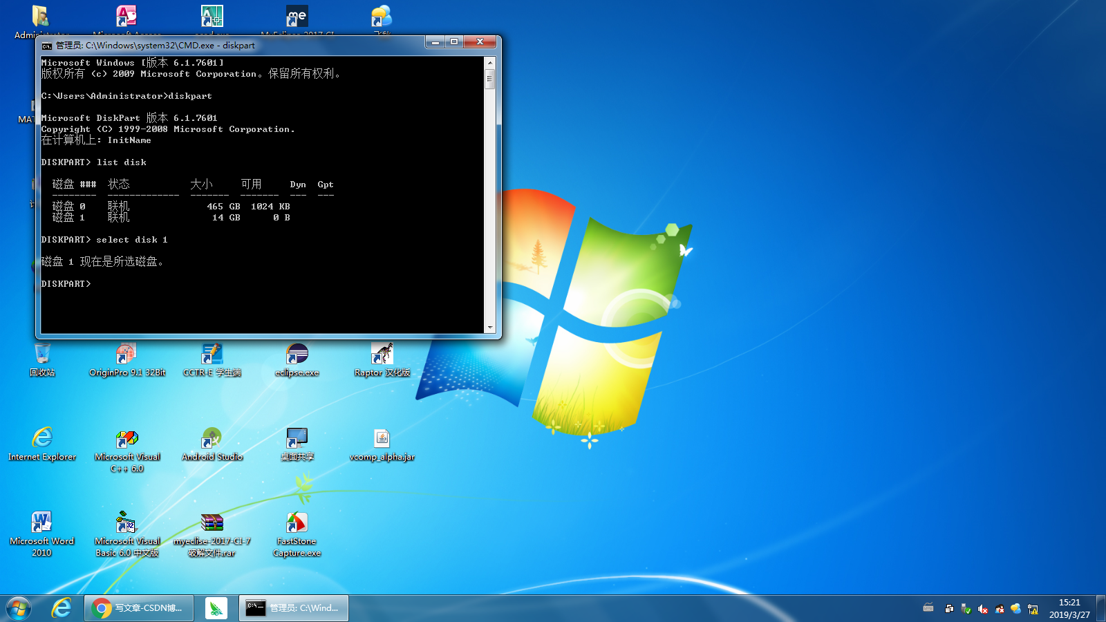 1.命令提示符里输入:diskpart