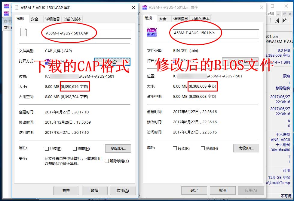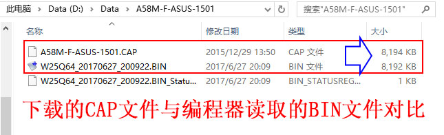 写入成功后开机,主板成功点亮。这里可以使用编程器读取BIOS备份。下载的CAP文件与编程器读取的BIN文件对比: