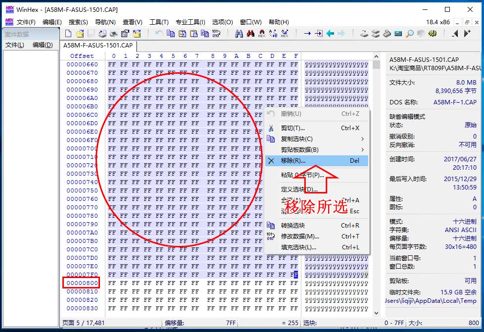 使用WinHEX软件修改CAP文件的方法:(如果是RT809F编程器可省略此步骤)
